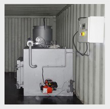 The containerized mobile incinerator mounted in ISO container before leave factory, pre-installation, no incineration house build construction, movable by truck and ultraviolet lamp sterilization inside.
